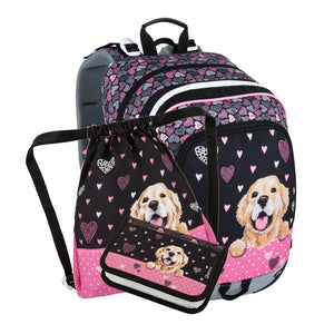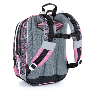 Scuola elementare dalla prima alla terza elementare. Zaino scolastico per bambine, spazioso e a tre scomparti, per la prima elementare. Schienale imbottito, con certificato medico e telaio interno ergonomico. Spallacci imbottiti, inclusa cinghia pettorale, zaino con piedini in plastica. Zaino scolastico in set con astuccio e portapantofole.