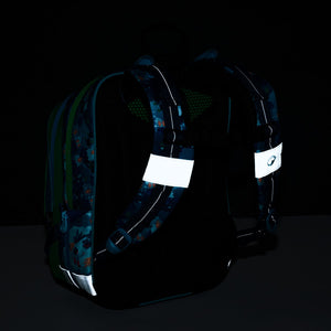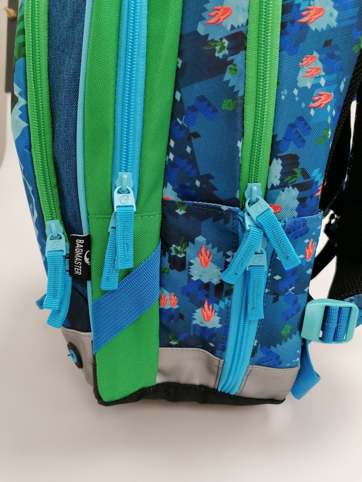 Zaino scolastico a tre scomparti con fantasia a quadretti per bambini di 1ª, 2ª e 3ª elementare.