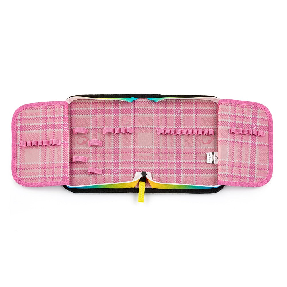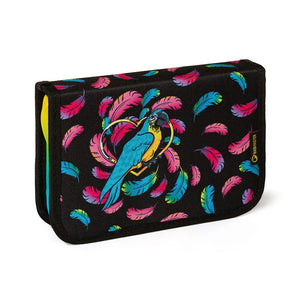 Astuccio colorato e allegro con un pappagallo, perfetto per le bambine di prima elementare. Le impugnature in gomma sulle due alette offrono spazio sufficiente per tutto il materiale scolastico necessario. L'astuccio si chiude con una cerniera di alta qualità. È leggero e non occupa molto spazio nello zaino.