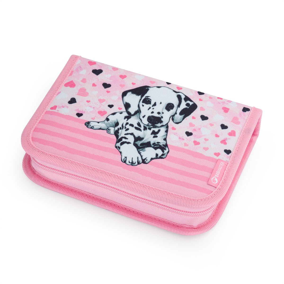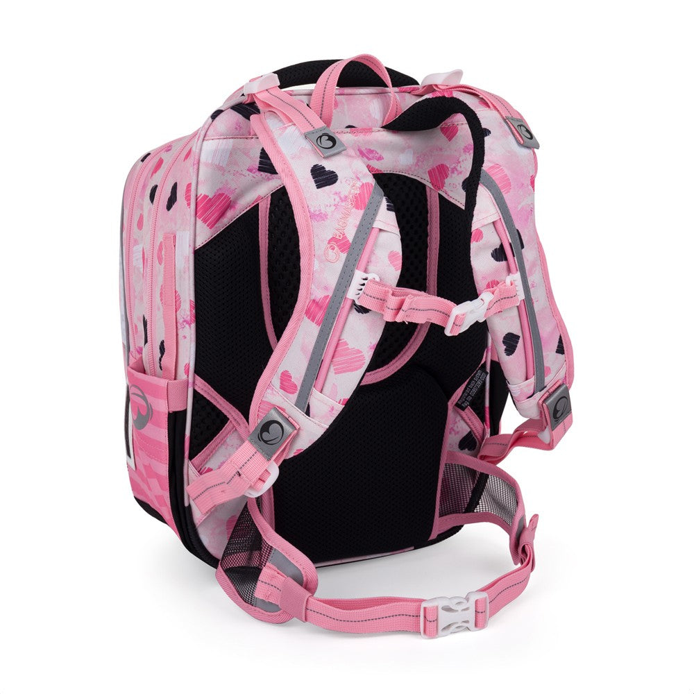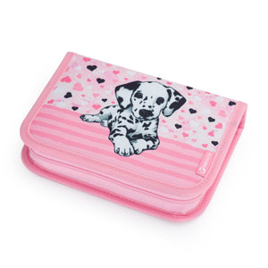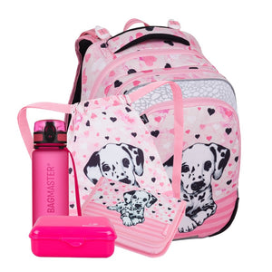 Zaino per bambine dalla prima alla terza elementare con un dalmata. Colpisce non solo per il suo design, ma anche per la sua leggerezza: pesa solo 0,98 kg. All'interno, tre ampi scomparti e un organizer per oggetti di valore. È poggiato su gambe in plastica e gli elementi riflettenti proteggono dal buio. Lo schienale con cintura regolabile sul petto e in vita è dotato di certificato medico. La bambina può abbinare allo zaino un astuccio per penne, una borsa in tessuto per pantofole e un set per la merenda.