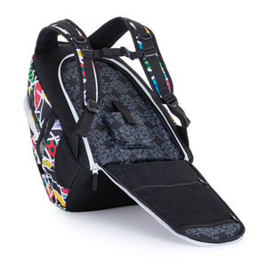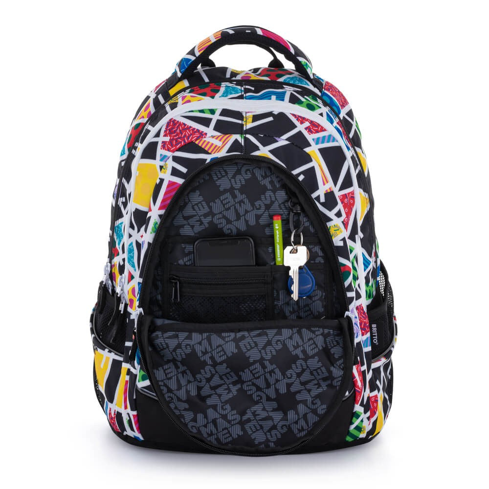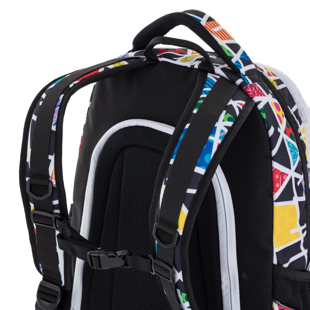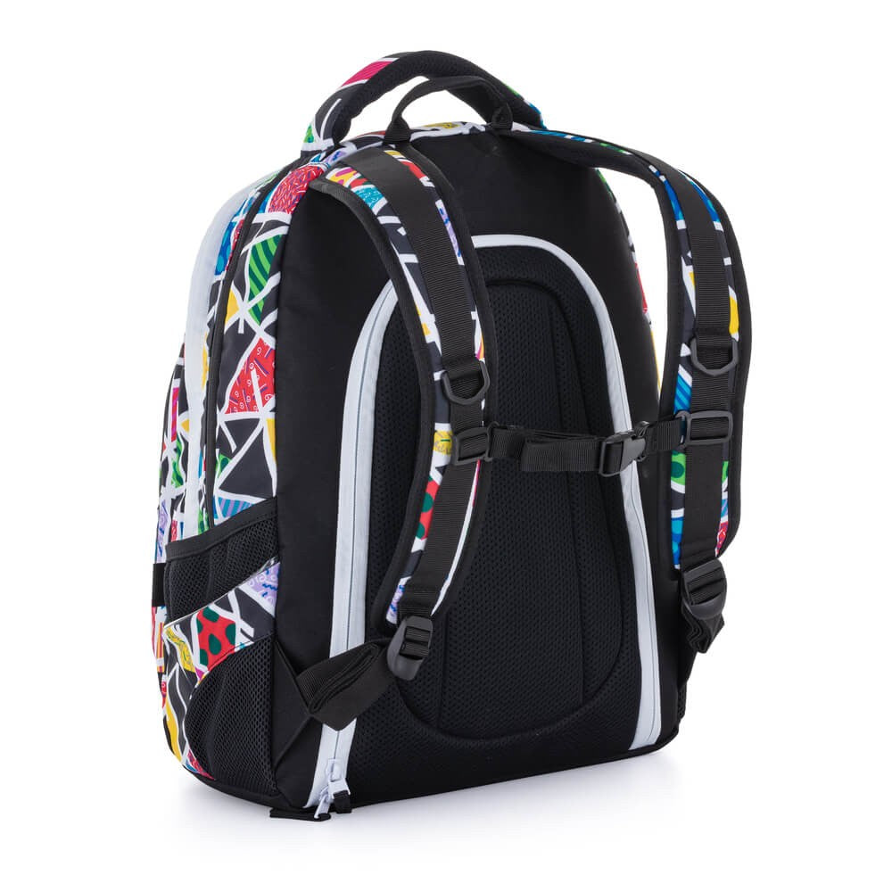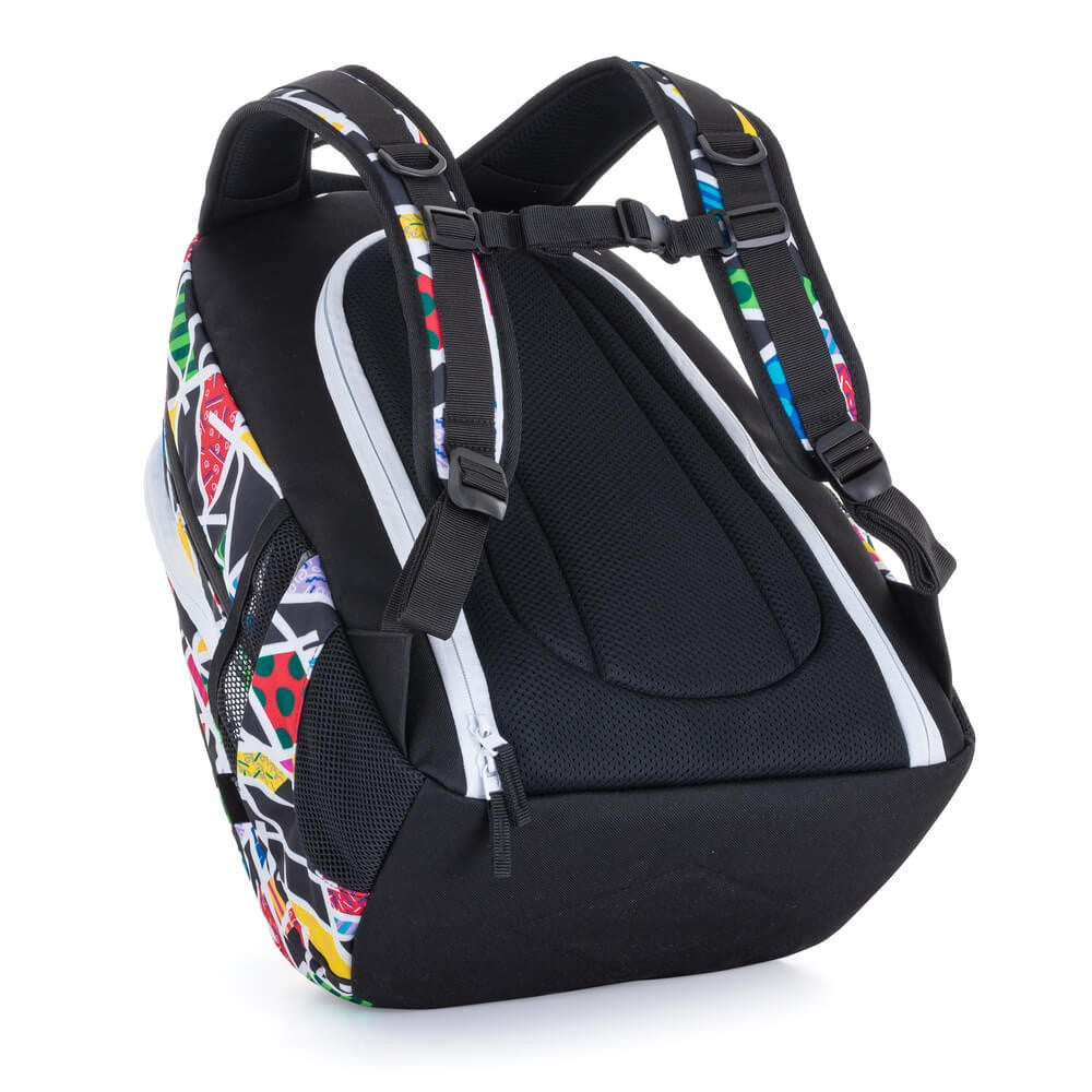 Lo zaino è dotato di schienale rinforzato, cintura pettorale e spallacci regolabili che avvolgono il corpo in modo corretto.