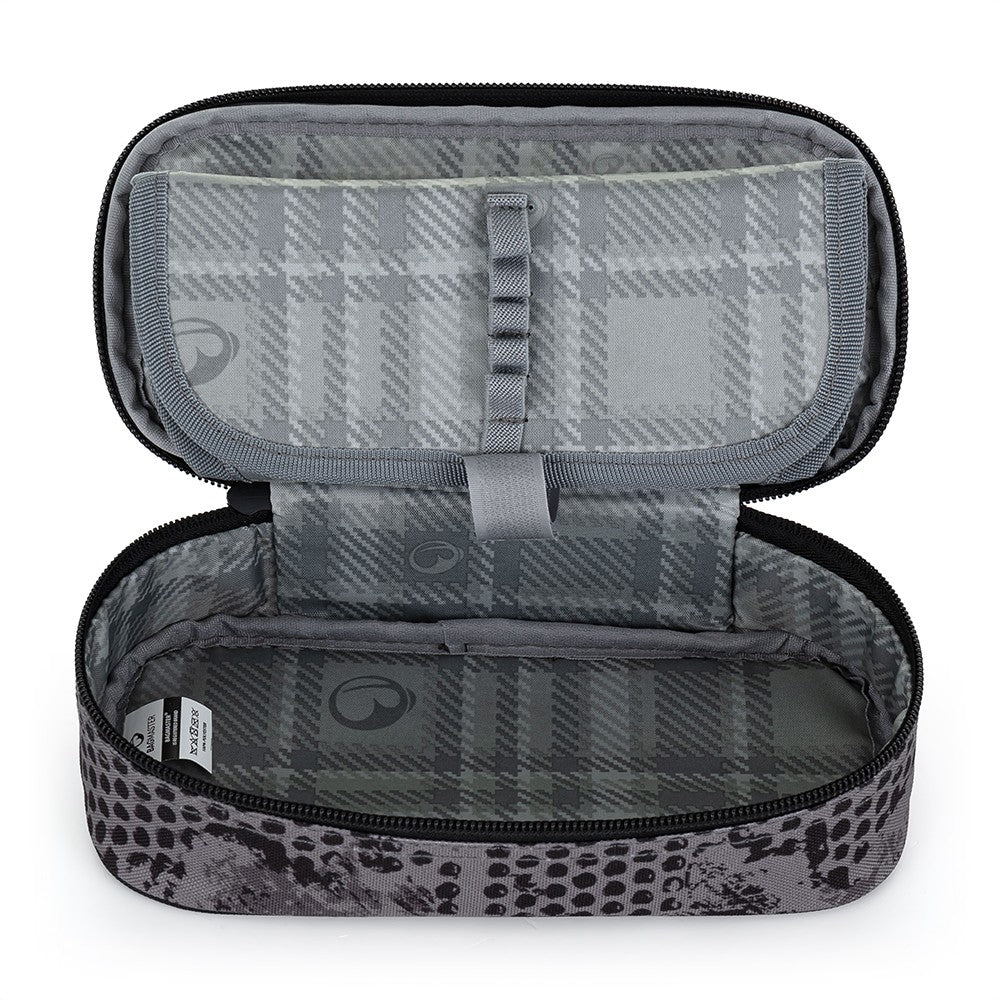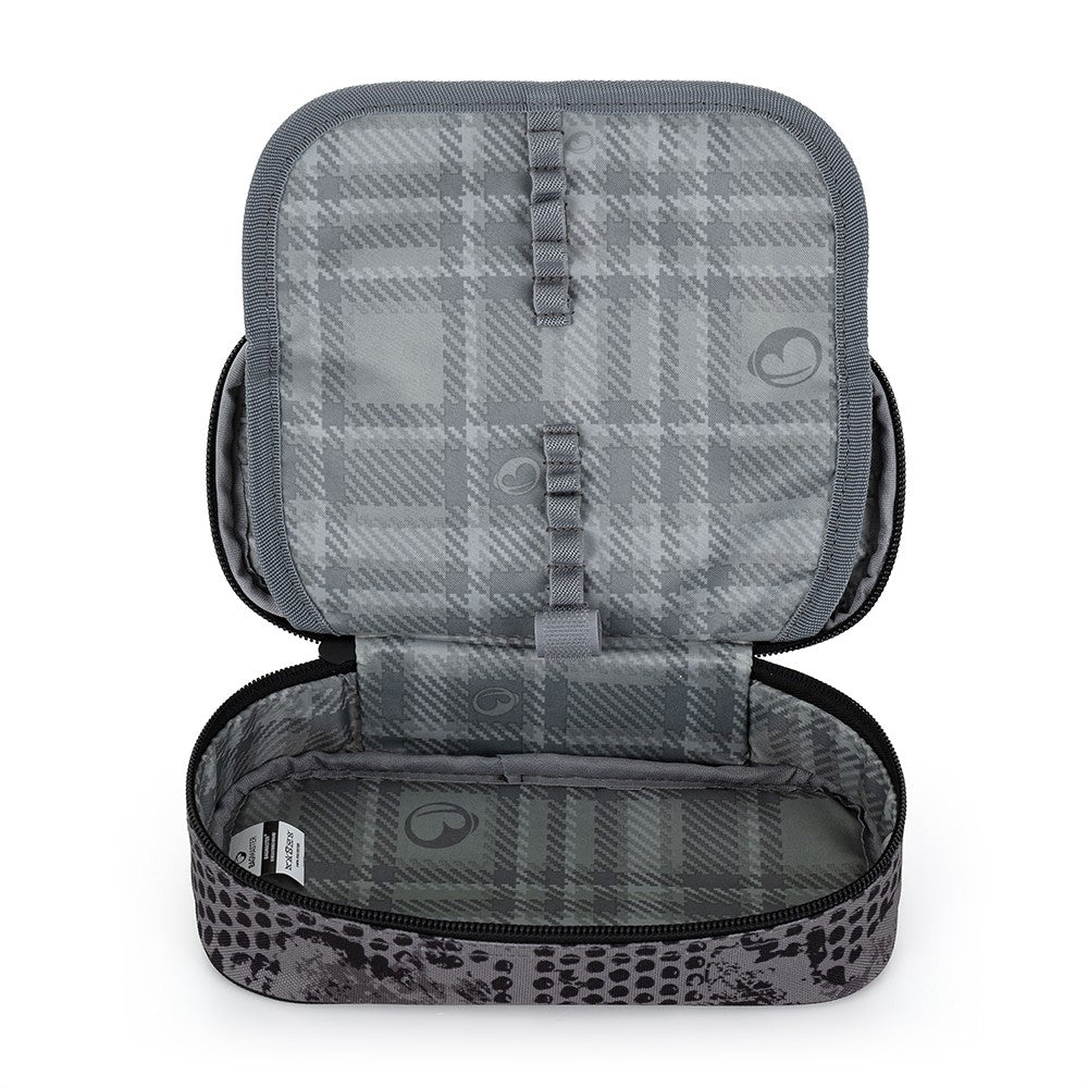 Custodia grigia a scomparto singolo per lo zaino Digital 23 B da bambino e bambina. All'interno presenta una doppia suddivisione con 20 elastici e tre tasche più piccole.
