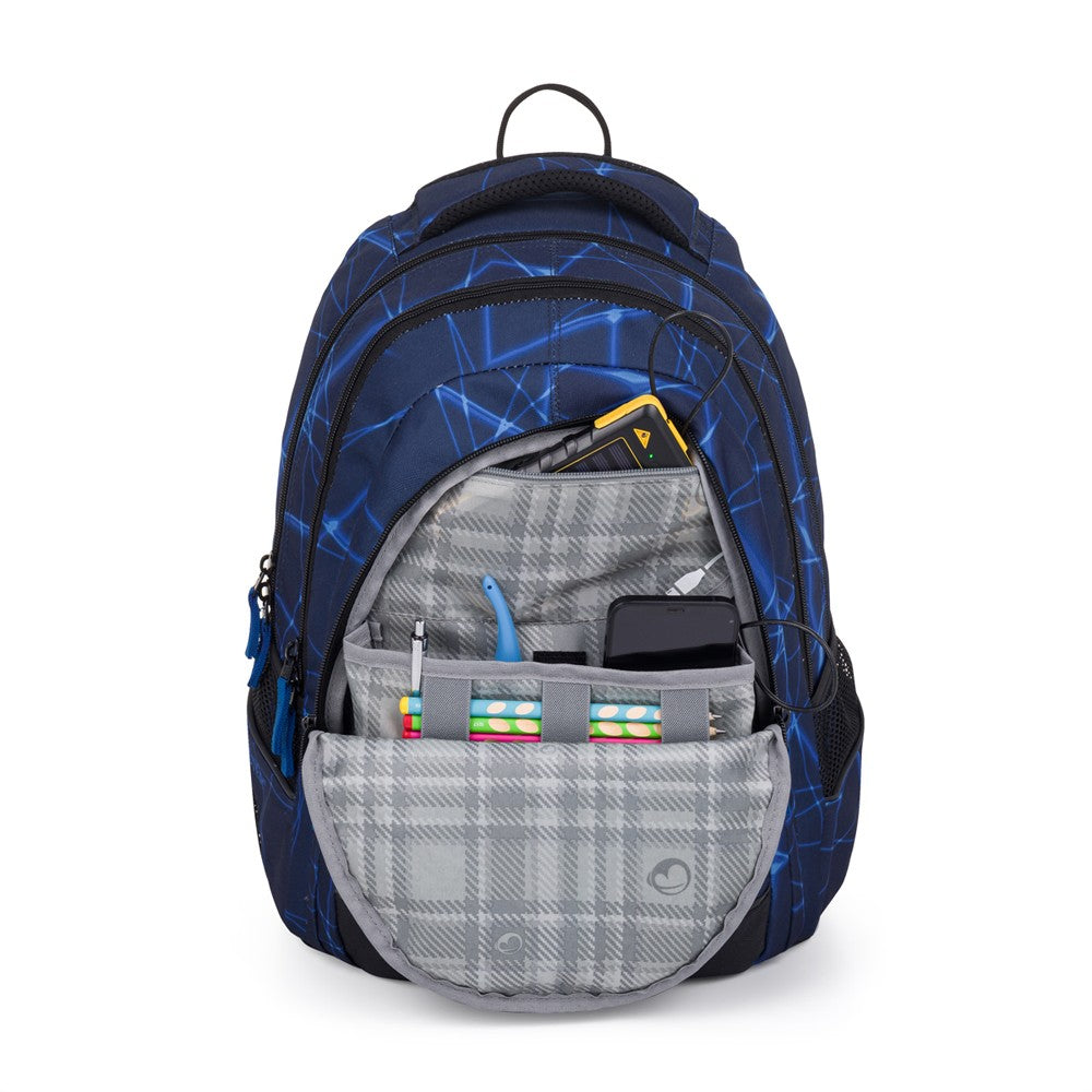 Zaino Digital 24 A originale e ultraleggero per studenti e studentesse più grandi. Lo zaino ha uno schienale rinforzato, una cinghia sternale e spallacci regolabili che avvolgono perfettamente la figura. Lo scomparto principale è dotato di uno scomparto imbottito per laptop da 15" e una tasca frontale con velcro.