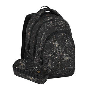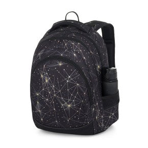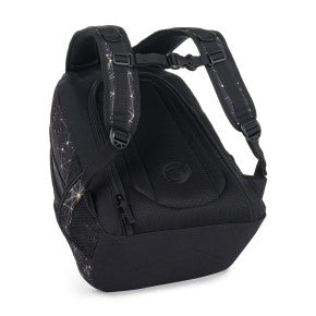 Uno zaino elegante per le ragazze che puntano alle stelle. Questo zaino nero con costellazione dorata non è solo bello, ma anche funzionale. Ha una tasca segreta sul retro, una cinghia pettorale regolabile e pesa solo 0,8 kg, il che lo rende comodo anche per un uso prolungato. Tre ampi scomparti offrono ampio spazio, tra cui una tasca per laptop e un organizer per telefono o piccoli oggetti. È inoltre dotato di elementi riflettenti per la sicurezza e di un'etichetta cucita per il nome in caso di smarrimento dello zaino.