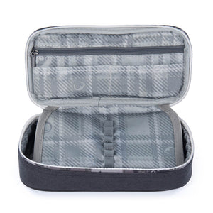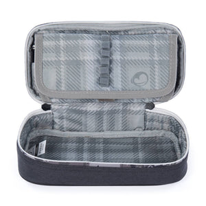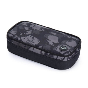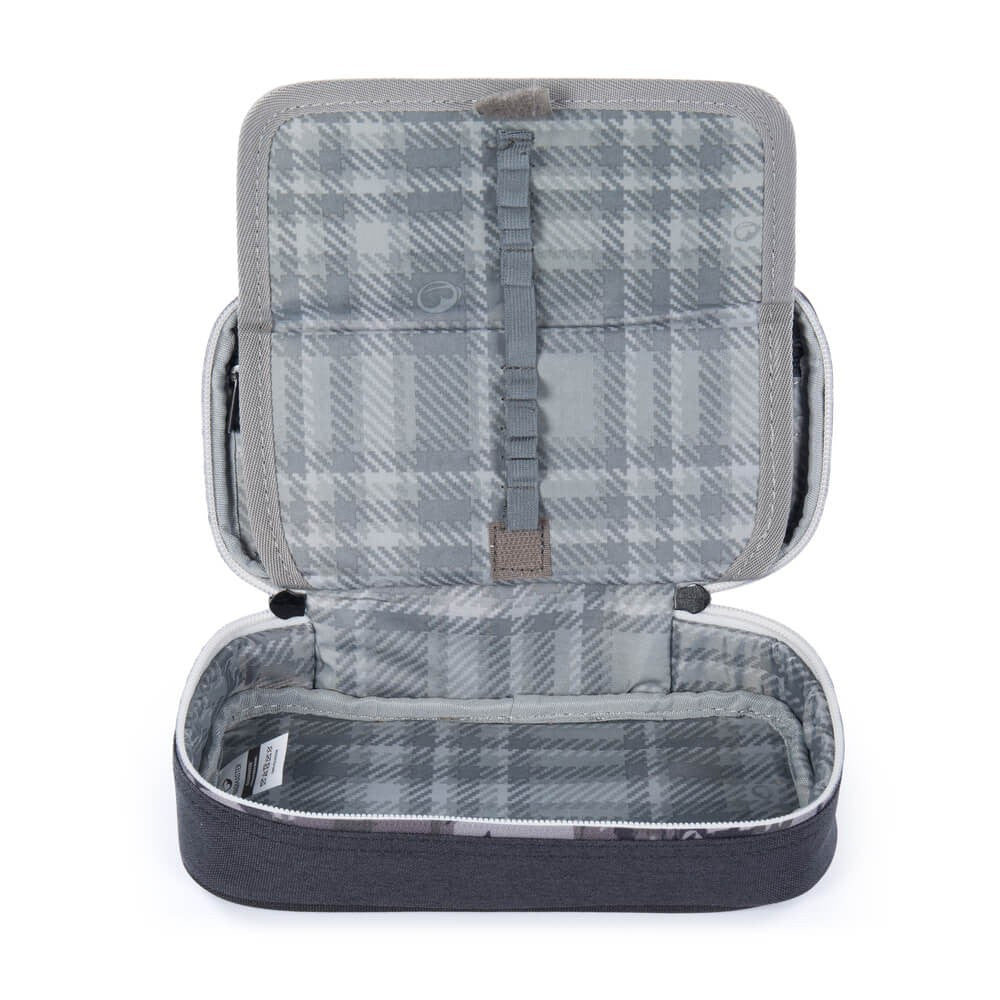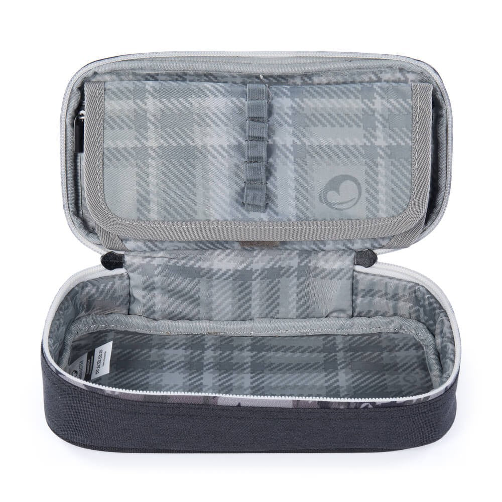 Una custodia mimetica nera e grigia non solo per chi ha scelto lo zaino da skateboard Flick 22 B. All'interno, un ampio scomparto e venti passanti in gomma per penne e matite.