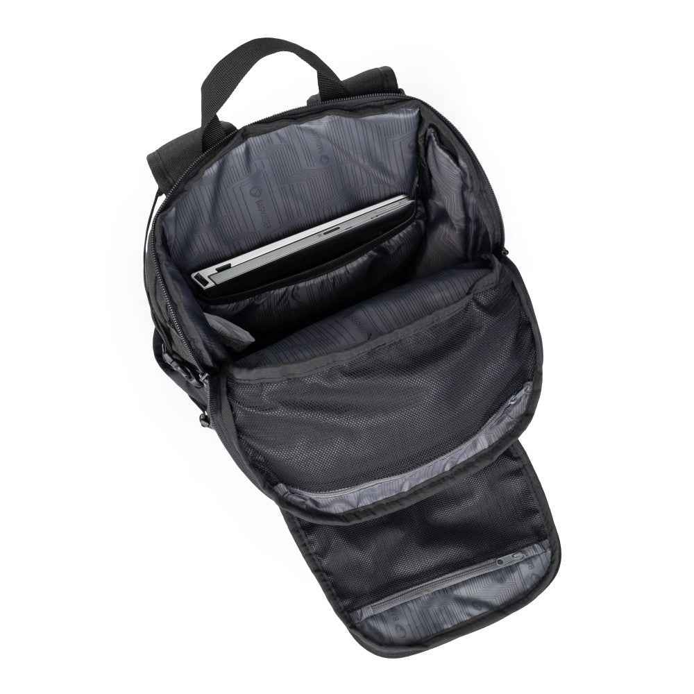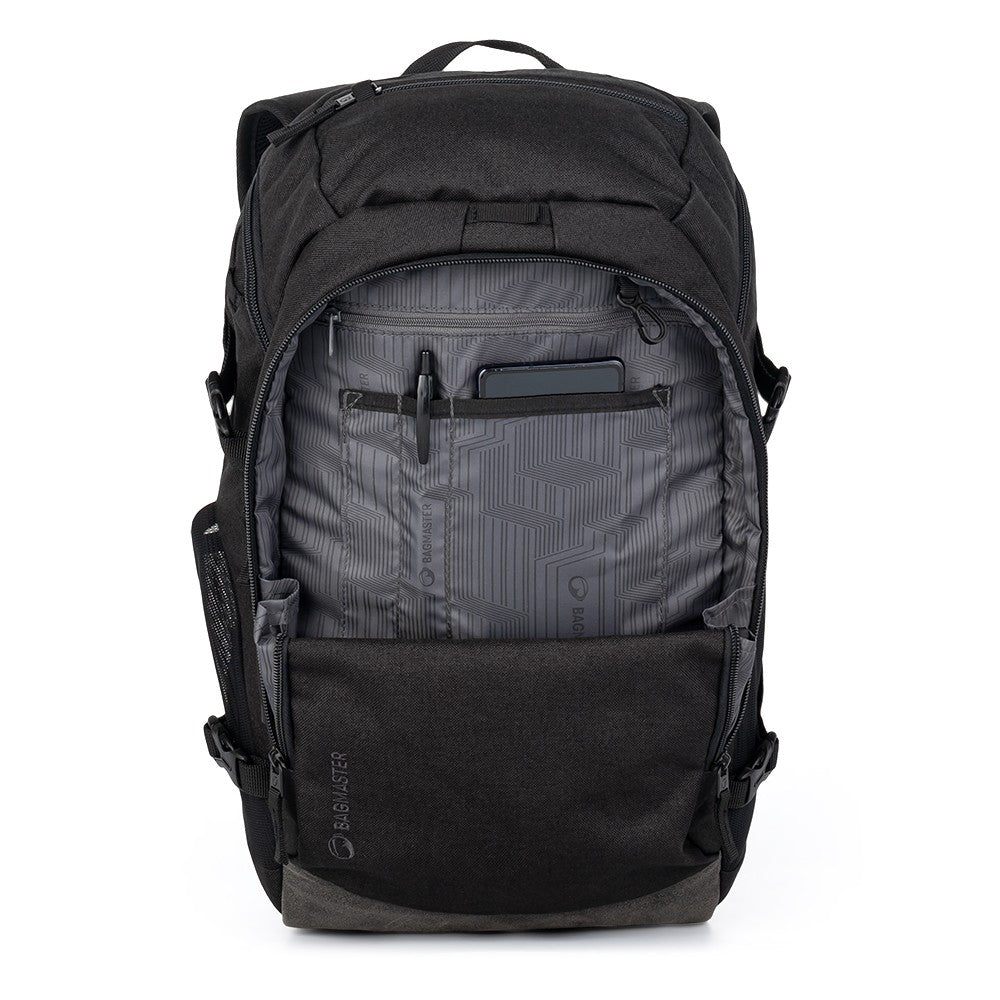Zaino Nero Elegante Bagmaster – Un zaino da città pratico e stilosissimo, progettato per chi cerca funzionalità e comfort. La tasca imbottita per portatile offre una protezione sicura per il tuo dispositivo, mentre la tasca morbida per occhiali garantisce la sicurezza dei tuoi accessori più delicati. Le tasche laterali per bottiglie sono perfette per avere sempre a portata di mano una bevanda, mentre la presa per cuffie o power bank ti permette di rimanere connesso in ogni momento, senza dover cercare il tuo dispositivo.
