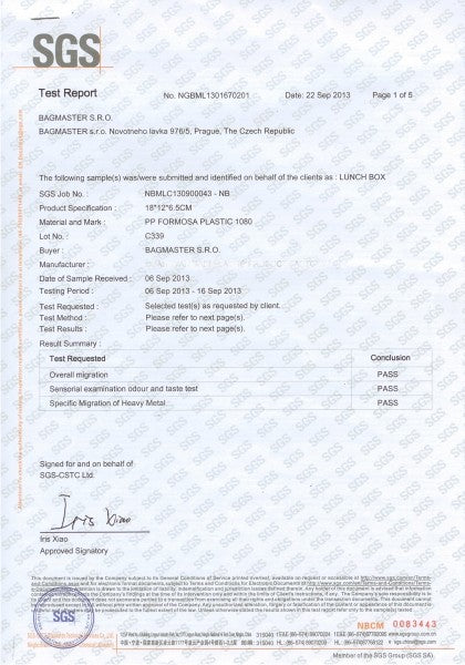 Lunch box certificato per la scuola o per un viaggio. A scomparto singolo.