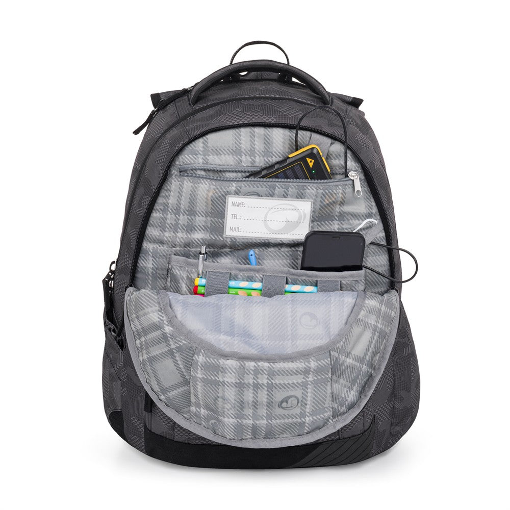 Uno zaino extra spazioso e comodo per tutti i ragazzi e le ragazze più grandi, non solo per la scuola. È perfetto fin nei minimi dettagli: una tasca imbottita per il laptop, una tasca di sicurezza posteriore per i documenti ed elementi riflettenti. Inoltre, ha rinforzi posteriori e spallacci morbidi e anatomici.