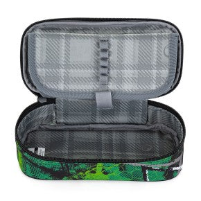 Questo astuccio è progettato per contenere tutto ciò che serve durante le lezioni di italiano, matematica, scienze, arte e tecnologia. Ogni oggetto trova il suo posto: penne e matite si collocano in 20 elastici interni, mentre compassi, gomme, righello e evidenziatori trovano spazio sotto la patta con gli elastici. Sotto il coperchio ci sono anche una piccola tasca e scomparti per documenti, carte o chiavette USB.