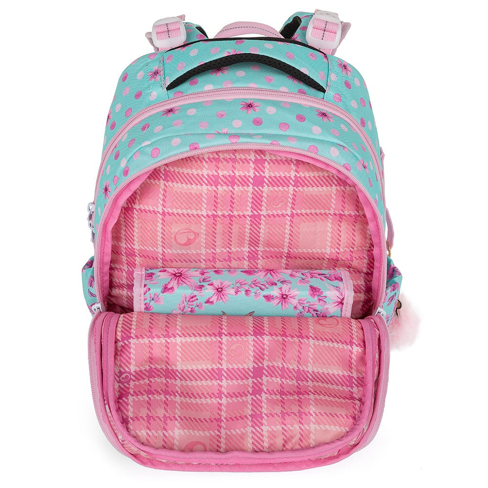 Colori rosa e blu e una simpatica cerbiatta con un cerbiatto? È il sogno di ogni bambina. Lo spazioso zaino Lumi a tre scomparti è pensato per soddisfare le esigenze scolastiche dalla prima alla terza elementare. Oltre all'immagine, le bambine apprezzeranno gli scomparti per lo studio, gli snack e gli oggetti di valore, il ciondolo peloso e l'intelligente organizer. I genitori apprezzeranno gli elementi riflettenti e il sistema di supporto posteriore sapientemente progettato che supporta la corretta postura durante la camminata.