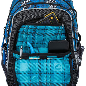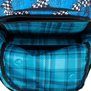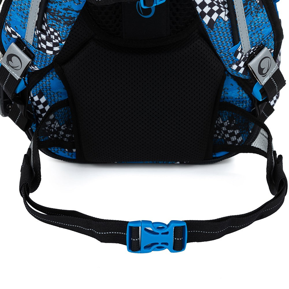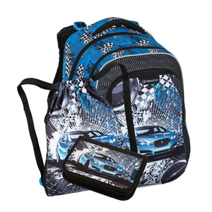 Set scolastico per bambini della prima elementare che amano le auto da corsa. Lo zaino super leggero pesa meno di un chilogrammo, è dotato di un nuovo sistema di sicurezza per la schiena con cintura sui fianchi, elementi riflettenti, un pratico organizer e una tasca laterale per le bevande. La rete degli spallacci e dello schienale anatomici è morbida e antigraffio. Il set include una borsa in tessuto e un astuccio. Ciondolo a forma di auto - non luminoso.