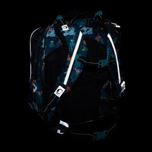 Zaino scolastico blu e nero a tre scomparti per ragazzi dalla prima alla terza elementare. Il sistema dorsale ergonomico con spallacci imbottiti garantisce il massimo comfort durante il trasporto. La cinghia pettorale e la cintura lombare aiutano a distribuire il peso dello zaino. Gli elementi riflettenti rendono lo zaino sicuro anche al buio.