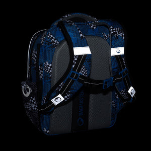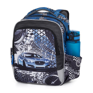Zaino per l'asilo BAGMASTER con auto: per tutti i piccoli corridori. Questo zaino ultraleggero è progettato per i bambini in età prescolare. Lo schienale ergonomico e gli spallacci stretti intorno al collo proteggono la schiena e la colonna cervicale. Lo scomparto principale è ampio e ben organizzato, con una tasca frontale e tasche laterali elasticizzate ideali per la borraccia e un ombrellino. Il fondo solido garantisce stabilità, mentre gli elementi riflettenti assicurano visibilità in condizioni di scarsa luce.
