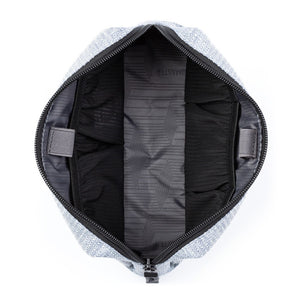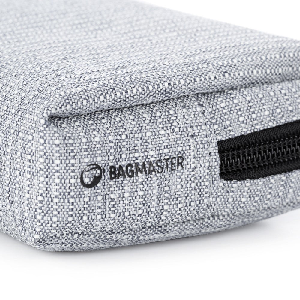 Custodia grigia a scomparto singolo con tasche a rete e passanti interni. Si abbina allo zaino Poky 22 A, ma può essere utilizzata anche con altri zaini da città e da studio.
