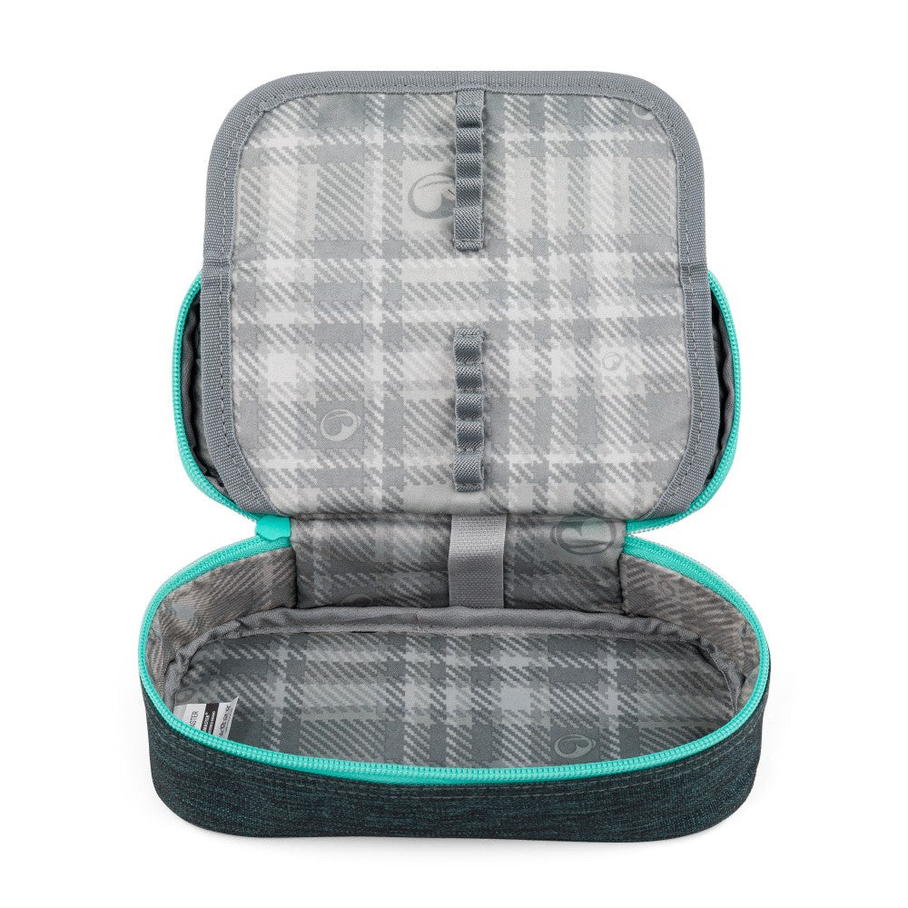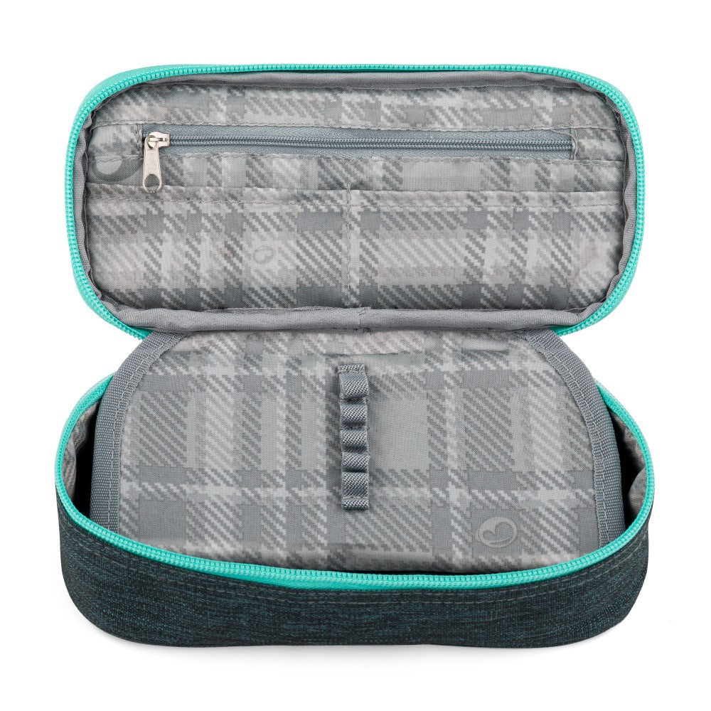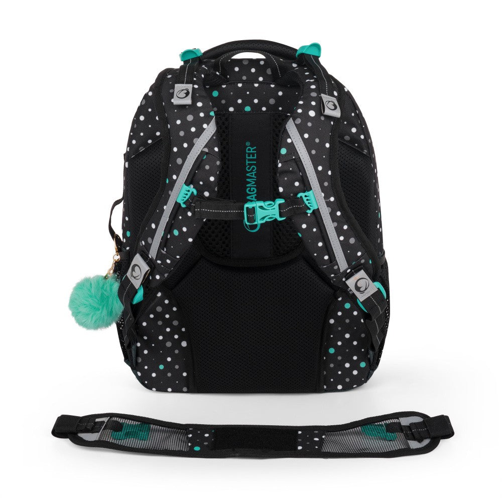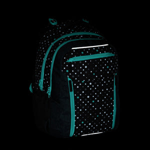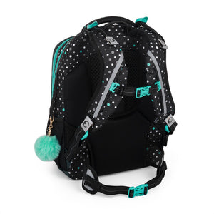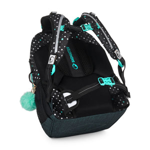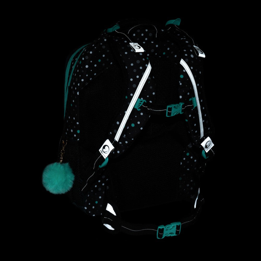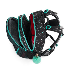 Set nero e turchese composto da zaino a due scomparti e astuccio per bambine dalla terza alla quinta elementare. Lo zaino è dotato di elementi riflettenti di sicurezza, una tasca laterale per le bevande, un organizer per cellulare e power bank, nonché di uno schienale e spallacci morbidamente imbottiti. Grazie al fondo rinforzato, è stabile sia sulla schiena che sulla scrivania. L'astuccio è a scomparto singolo con doppia suddivisione e maniglie in gomma per gli strumenti di scrittura.