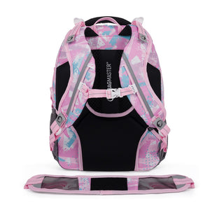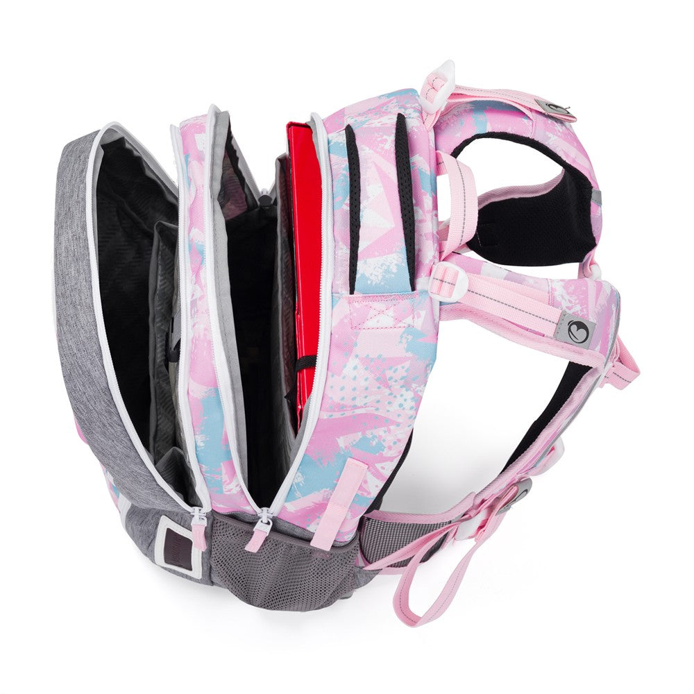 Zaino per bambine dalla terza alla quinta elementare. Grazie allo schienale e agli spallacci imbottiti e anatomici, completati da cintura toracica e lombare, questo zaino offre non solo comfort, ma anche supporto per una postura corretta. Lo zaino è praticamente diviso in due scomparti: nella parte anteriore presenta tasche più piccole e un organizer.