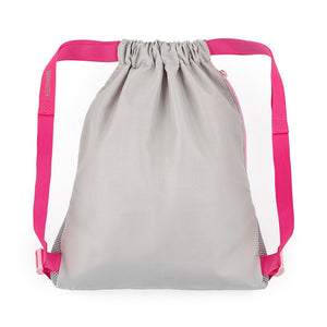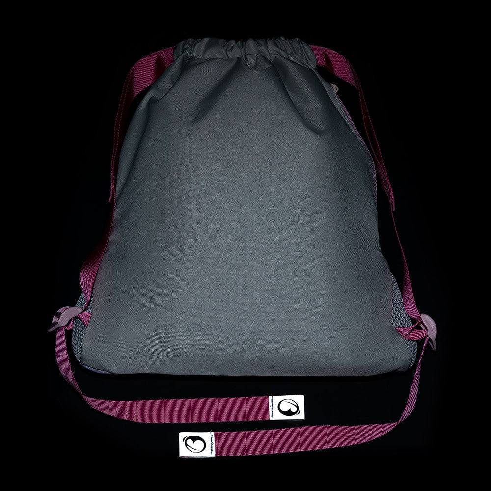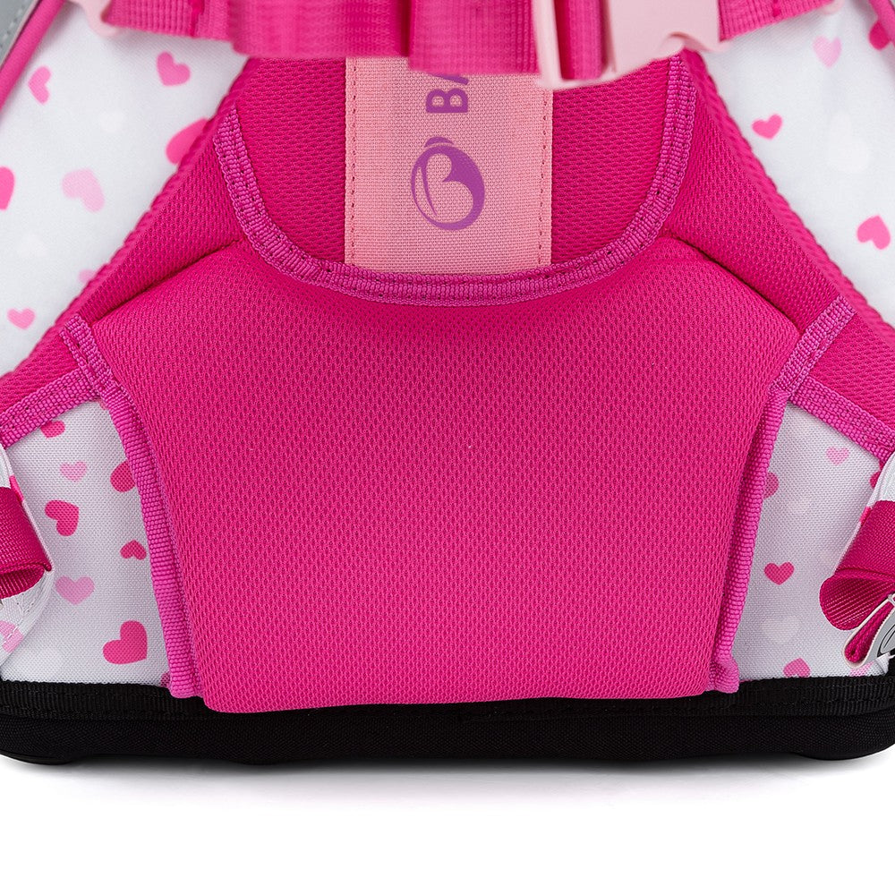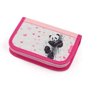 Primo set rosa e grigio Bagmaster con un simpatico panda su zaino, astuccio e sacca.