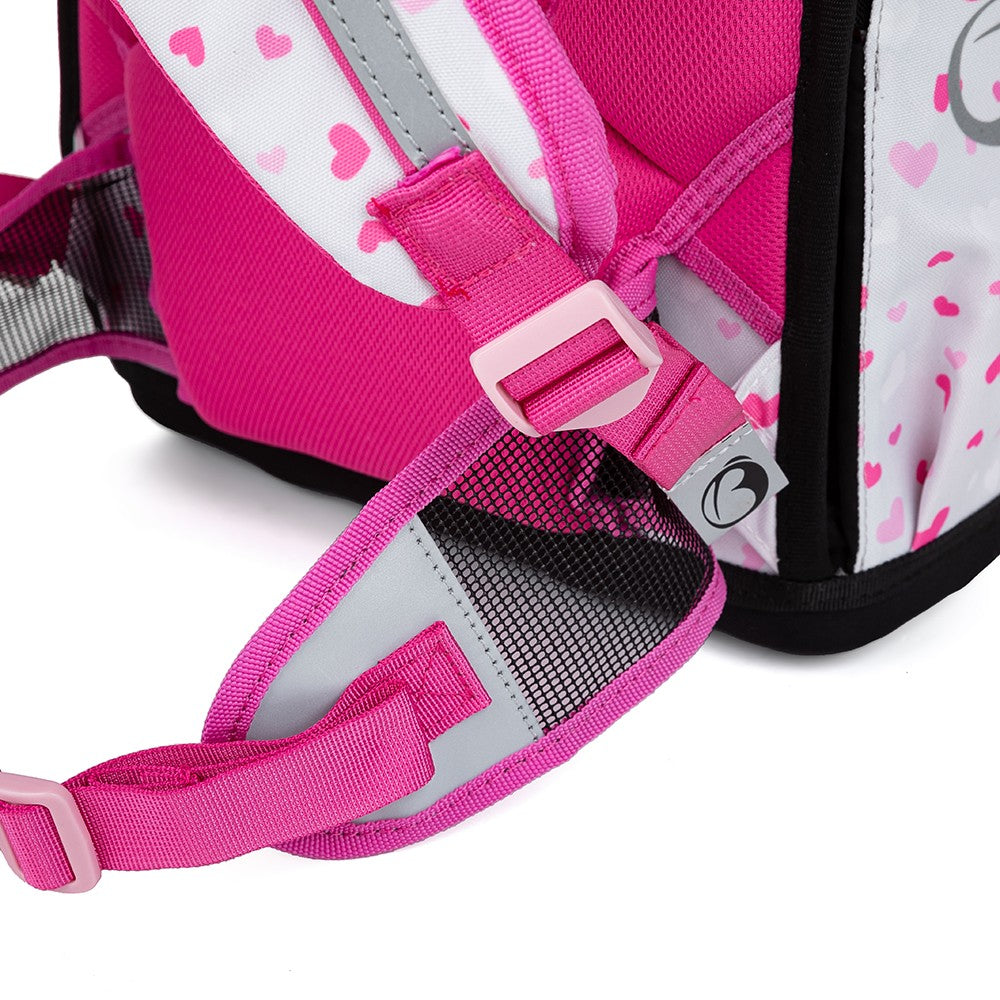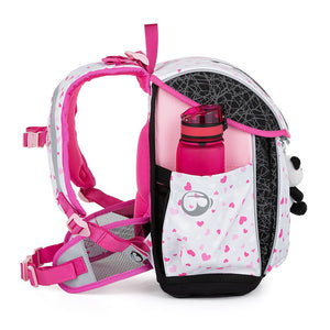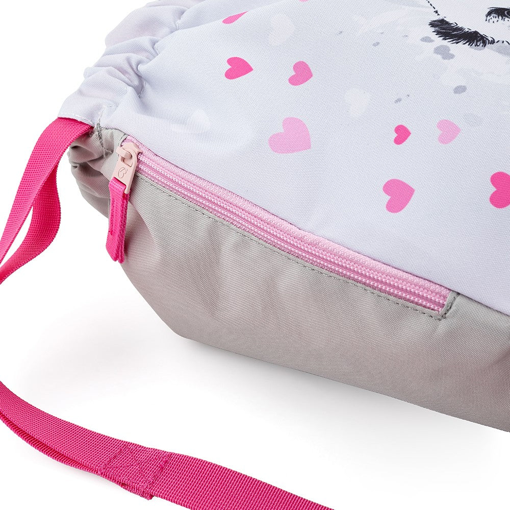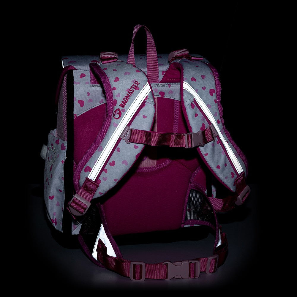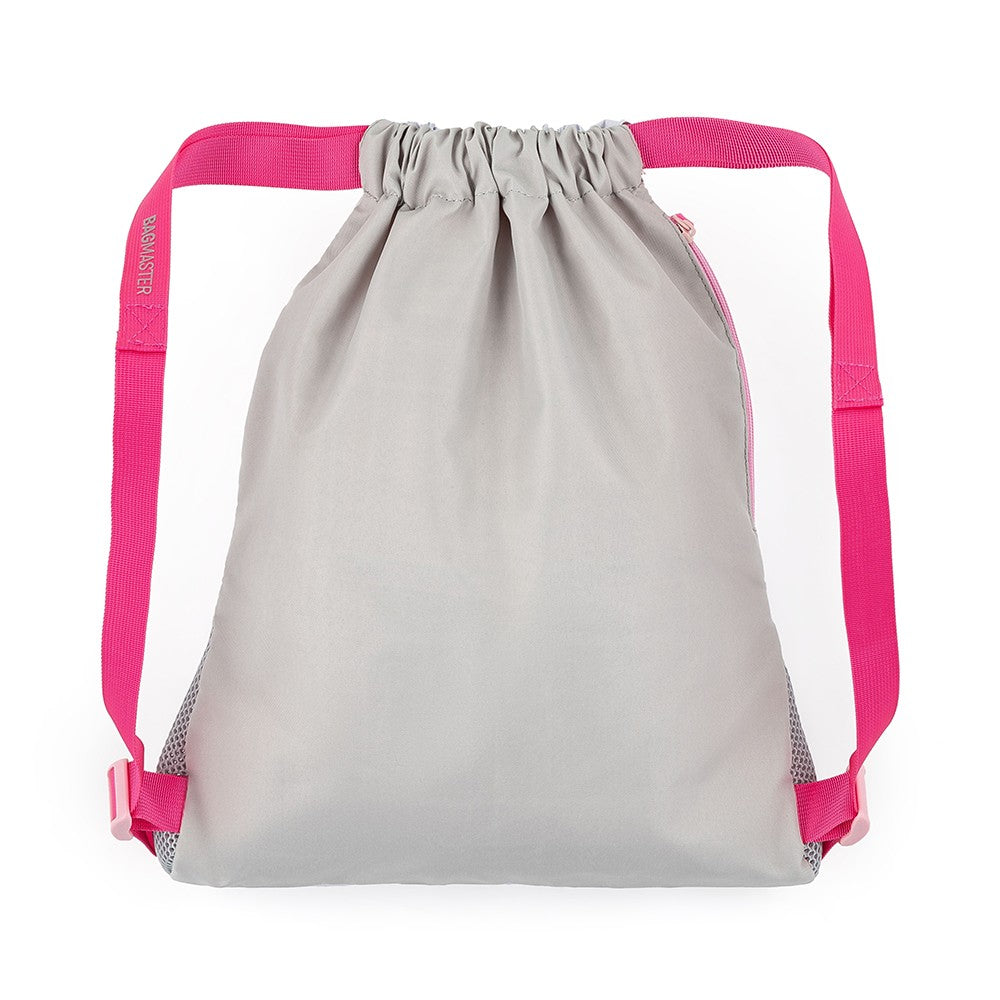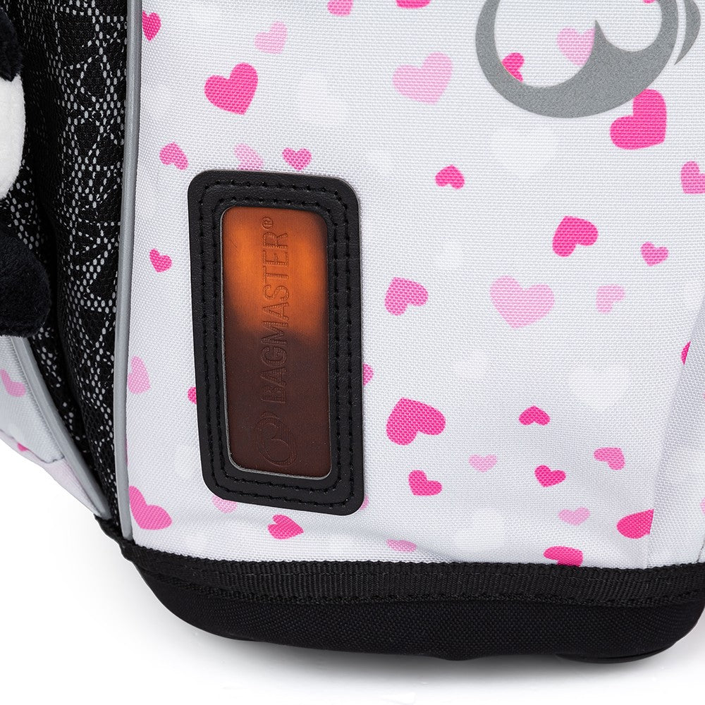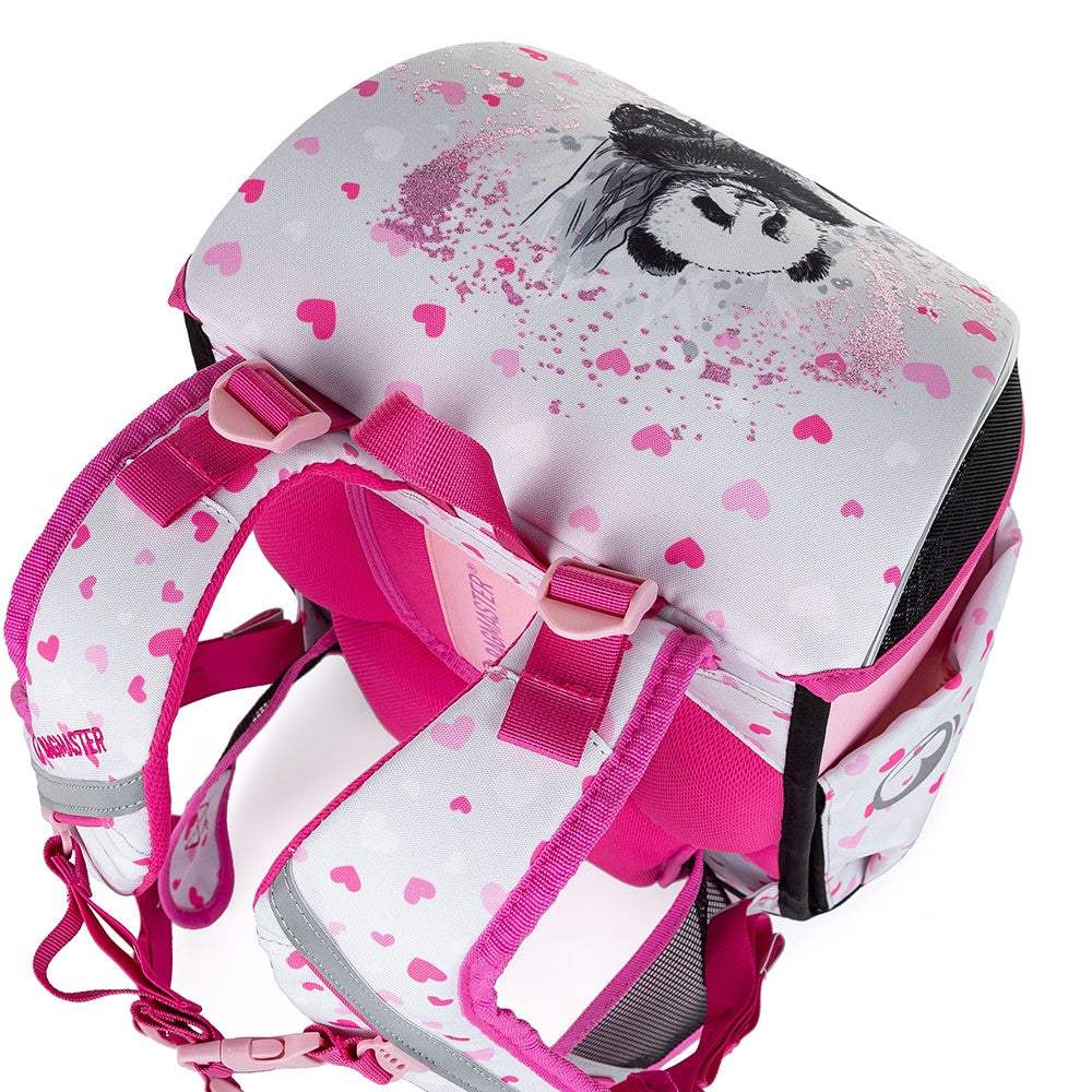 Un fantastico set Bagmaster rosa-grigio con un simpatico panda su valigetta, astuccio e borsa. In più, uno snack perfetto e una borraccia. La valigetta è adatta a tutte le bambine di prima e seconda elementare. È leggerissima, ha uno schienale ergonomico e uno scomparto principale ampio e trasparente. Le tasche laterali possono contenere una borraccia e un ombrello. La valigetta è decorata con un ciondolo di pelliccia ed elementi riflettenti.