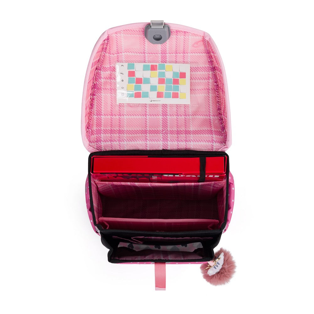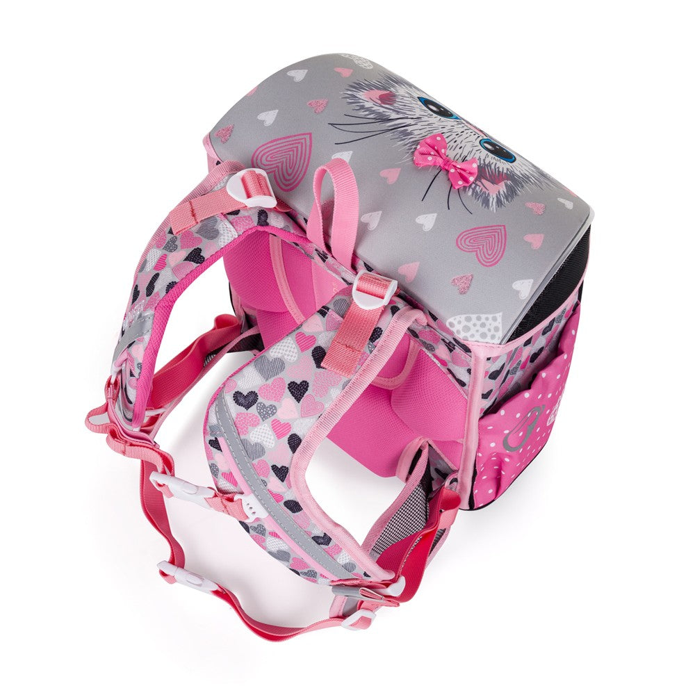 Zaino scolastico a tema gatto per bambine dalla prima alla terza elementare. Lo scomparto principale trasparente con separatore interno aiuterà a organizzare tutto il materiale scolastico. Il fondo solido con piedini in plastica garantisce la stabilità dello zaino, sia in classe che a casa. Con elementi riflettenti e una chiusura magnetica per una facile apertura, questo zaino a tema gatto diventerà un compagno indispensabile per la tua piccola studentessa.