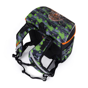 La cartella scolastica Bagmaster PRIM 23 C è leggera e resistente, pensata per bambini dalla 1ª alla 2ª classe, ma adatta anche fino alla 3ª. Realizzata in poliestere robusto e facile da trasportare senza affaticare la schiena. Lo scomparto principale è spazioso e adatto a libri, quaderni e cartelle formato A4, mentre la tasca frontale include un organizer per penne, astuccio o merenda. Ai lati sono presenti tasche per bottiglia o ombrello. La patta con chiusura magnetica è facile da usare dai bambini e include una tasca trasparente per l’orario scolastico. Lo schienale è anatomico e imbottito, gli spallacci sono regolabili e sagomati, e la cartella è dotata di cinghia pettorale e lombare per distribuire correttamente il peso e sostenere la postura. Il fondo rigido, completato da piedini di plastica antiscivolo, mantiene la cartella perfettamente in piedi proteggendo il contenuto e rendendola stabile su qualsiasi superficie. Gli elementi riflettenti migliorano la visibilità dei bambini. Garanzia 3 anni.